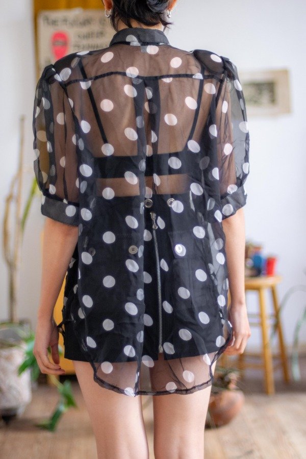 Estado: algunos hilos corridos en la zona de los botones, ver foto.