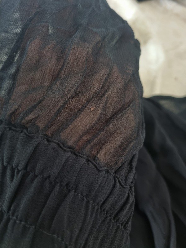 Estado: tiene 3 pequeños remiendos poco notorios ya que se encuentran en la zona del bordado y un enganche pequeño cerca de la cintura. Por eso se encuentra rebajada.