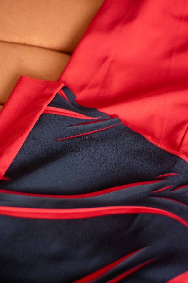 Composición: 100% poliéster. Tela elastizada.